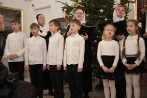 Chór dziecięcy wykonał trzy kolędy ludowe: „A czy doma, doma”, „Oj na riczci na Ordani” oraz „Oj tam na riczci”, wprowadzając słuchaczy w prostą i radosną atmosferę bożonarodzeniowego świętowania.